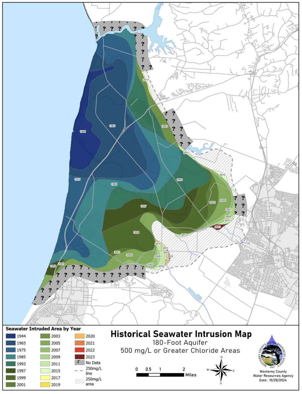 Seawater is slowly pushing inland, threatening the northern Salinas Valley’s groundwater — and protecting it is more complicated than simply pumping less water. Derrik Williams of Montgomery & Associates explained at a recent Board meeting why coastal aquifers require more than just stabilizing groundwater levels: if ocean water sits higher than inland groundwater, seawater will continue advancing unless groundwater levels are raised or the intrusion is physically intercepted.